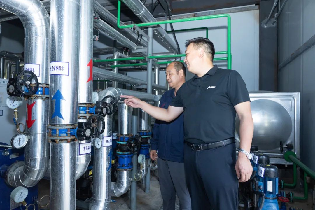 水電暖維護(hù)及管理處處長(zhǎng)王青華在鍋爐房檢查分布式供暖設(shè)備