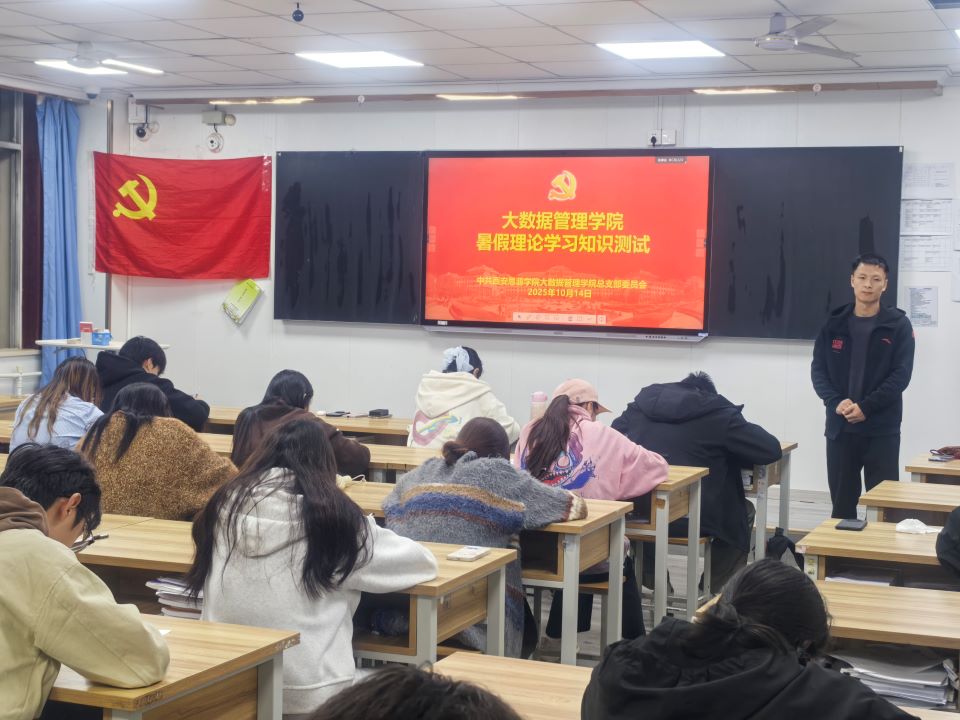 為嚴(yán)把黨員發(fā)展“入口關(guān)”,夯實(shí)發(fā)展對象及積極分子的理論基礎(chǔ)與政治素養(yǎng),筑牢理想信念根基,2025年10月14日,大數(shù)據(jù)管理學(xué)院黨總支在中心樓603與606教室組織開展暑假理論知識學(xué)習(xí)測試,全體發(fā)展對象及入黨積極分子參與。本次測試由大數(shù)據(jù)管理學(xué)院黨總支組織員王衛(wèi)冬、黨總支宣傳員李娜及第三黨支部組織委員侯超監(jiān)考。
