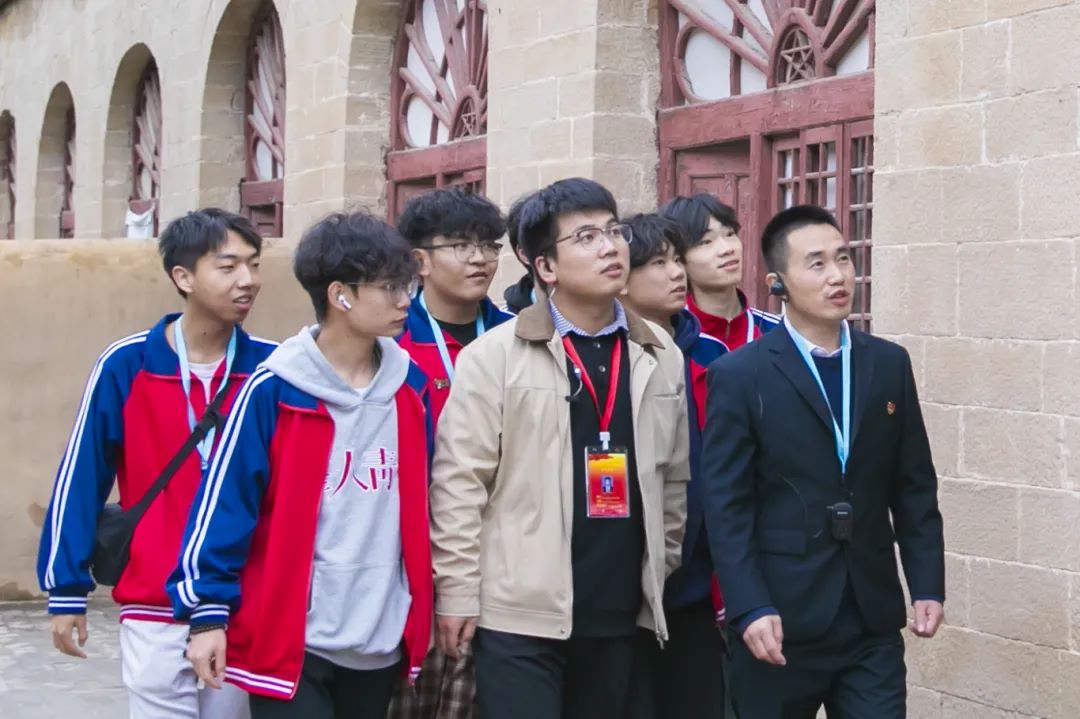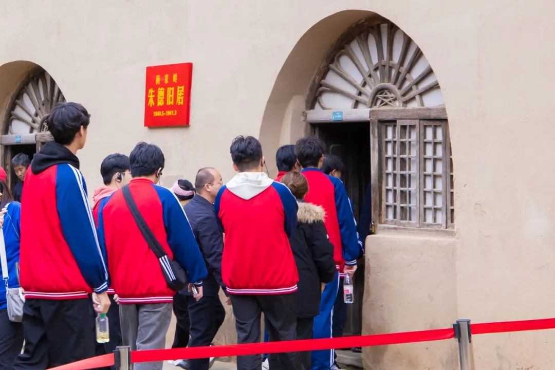 城市建設(shè)學(xué)院黨委副書(shū)記、學(xué)管副院長(zhǎng)張剛前排(右一)帶隊(duì)參觀楊家?guī)X革命舊址