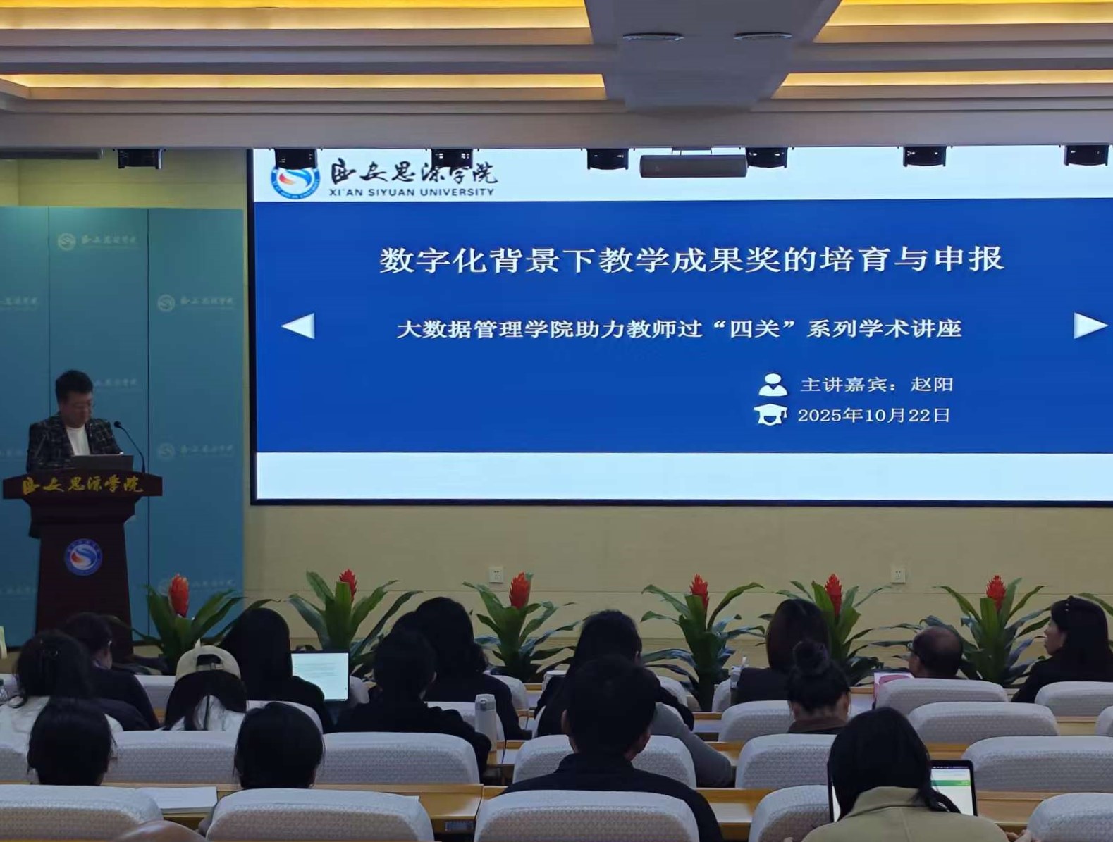 為深化數(shù)字化背景下高校教學(xué)改革,提升教師教學(xué)成果培育與申報(bào)能力,10月22日下午,西安思源學(xué)院大數(shù)據(jù)管理學(xué)院成功舉辦“數(shù)字化背景下高校教學(xué)成果的培育與申報(bào)——大數(shù)據(jù)管理學(xué)院助力教師‘過(guò)四關(guān)’系列學(xué)術(shù)講座”。本次講座特邀趙陽(yáng)老師擔(dān)任主講嘉賓,大數(shù)據(jù)管理學(xué)院、馬克思主義學(xué)院、文博學(xué)院、人工智能學(xué)院積極組織教師參加此次講座。