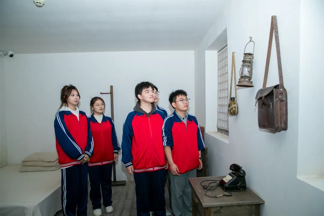 在老一輩革命家舊居,師生駐足凝視木質(zhì)書桌、黃銅油燈等實(shí)物——正是在這盞燈下,毛澤東同志熬過無數(shù)不眠夜,完成了《實(shí)踐論》《矛盾論》等光輝著作,直觀感受“暗夜著華章、危難謀復(fù)興”的奮斗精神。
