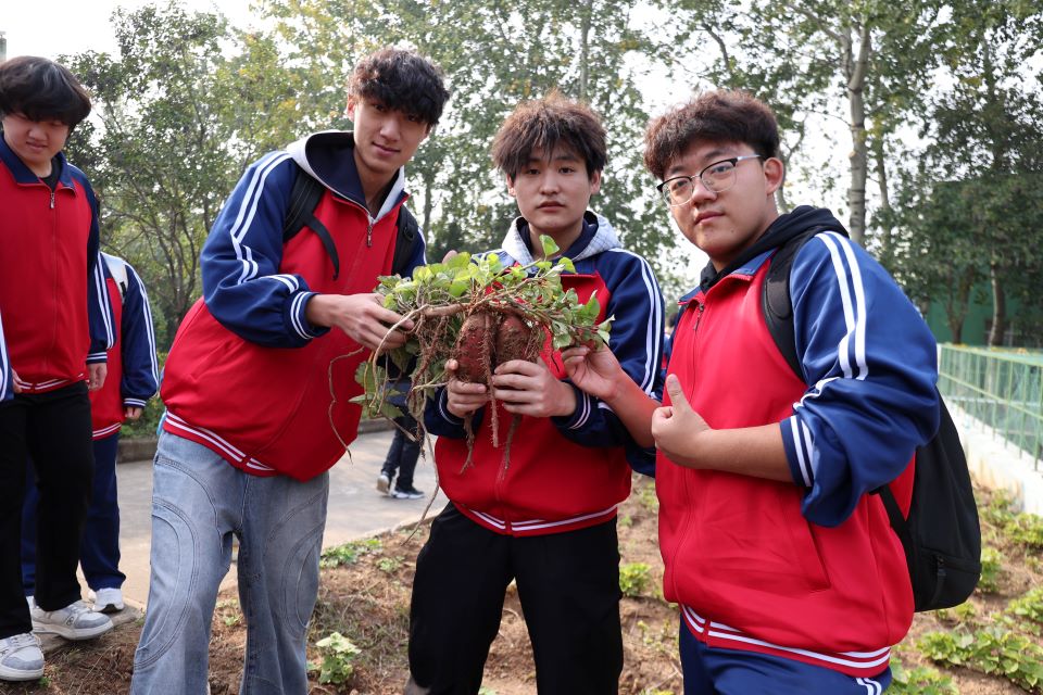 勞動實踐環(huán)節(jié)中,同學(xué)們熱情高漲,迅速以小組為單位,拿起鐵鍬等工具走進(jìn)紅薯地,展現(xiàn)出昂揚向上的精神風(fēng)貌。從小心翼翼地松動土壤,到仔細(xì)尋找紅薯藤蔓下的果實,再到合力將一串串飽滿的紅薯從泥土中挖出,每一個環(huán)節(jié)都充滿了專注與投入,田間地頭回蕩著同學(xué)們的歡聲笑語,也留下了大家忙碌的身影。經(jīng)過近兩個小時的辛勤勞動,同學(xué)們共收獲了數(shù)斤新鮮紅薯,看著裝滿筐的勞動成果,大家臉上都洋溢著自豪與喜悅,紛紛表示,此前“到延安去—三秦學(xué)子圣地行”活動讓他們對延安精神有了深刻的理論認(rèn)知,而此次勞動讓他們真正讀懂了“艱苦奮斗”的內(nèi)涵——它不是一句口號,而是彎腰揮鍬時掌心磨出的薄繭,是發(fā)現(xiàn)紅薯藤蔓下藏著果實的驚喜,是合力將深埋土壤的紅薯完整挖出時的堅持。