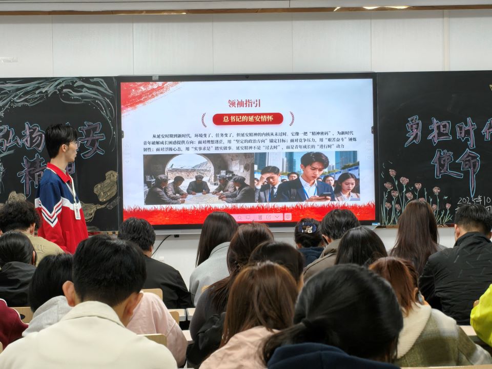 本次學習會內(nèi)容豐富、形式多樣;顒右潦,與同學們共同重溫了那段波瀾壯闊的革命歲月,深刻感受了老一輩革命家在艱苦環(huán)境下展現(xiàn)出的堅定信仰與不屈斗志。隨后,學習部代表做了主題發(fā)言,系統(tǒng)梳理了延安精神形成的歷史背景、核心內(nèi)涵及其在不同歷史時期的傳承與發(fā)展,并結(jié)合當前國家發(fā)展形勢與青年責任擔當,闡述了弘揚延安精神的必要性和緊迫性。