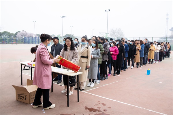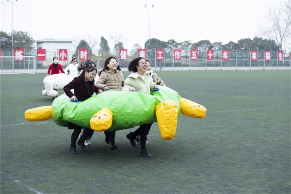 10日中午,一場春雨無聲降臨,然而雨水并沒有澆滅女教職工們的熱情,活動如期舉行。在搶杯子活動中,裁判員號令一響,女教職工們爭先恐后搶奪杯子,激烈比拼;參加后背寫字活動的女教職工們,用心感受后背上文字的筆畫勾勒,傳遞著快樂;打保齡球活動中,參賽教職工們拿起“保齡球”,準確地朝著遠處的礦泉水瓶投過去,觀眾們發(fā)出一片贊嘆。活動現(xiàn)場歡聲笑語不絕于耳,整個校園洋溢著喜慶祥和的節(jié)日氛圍。